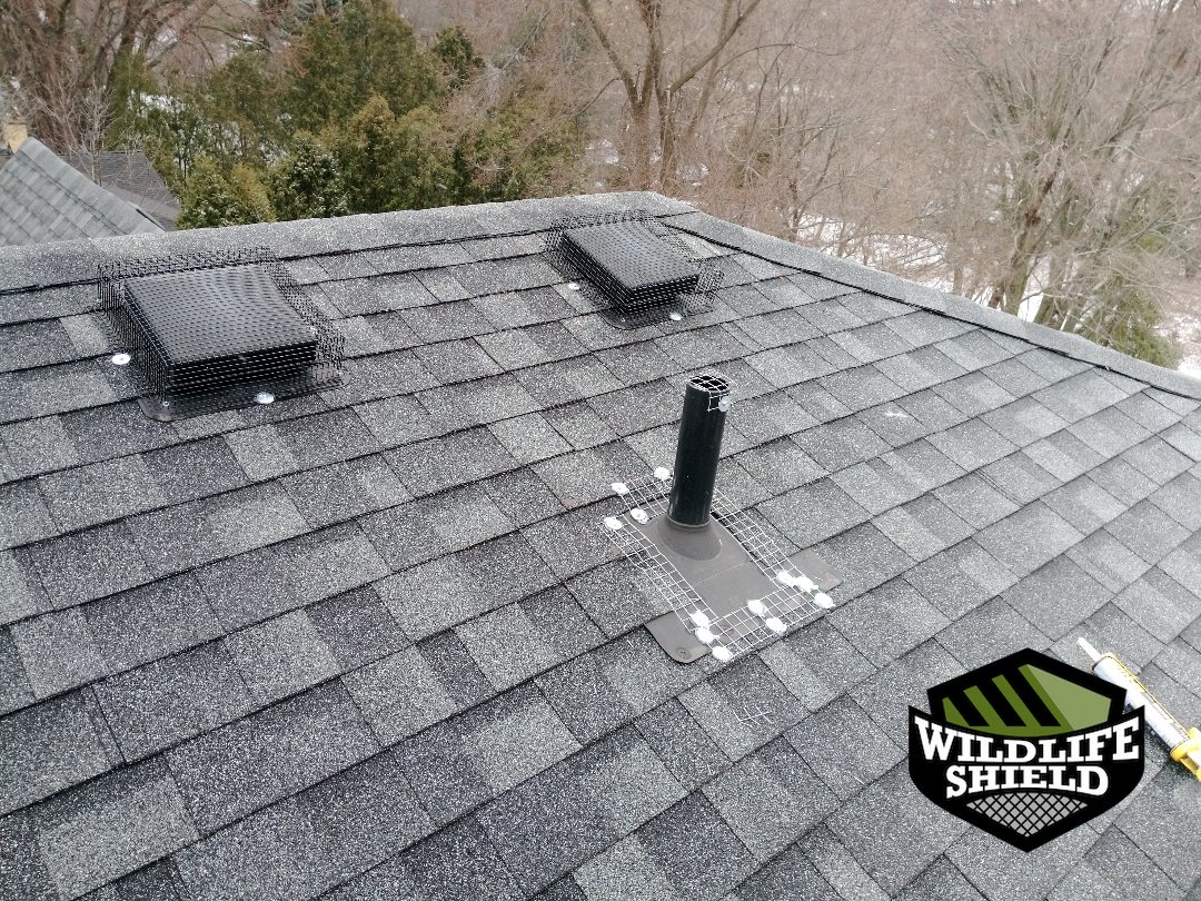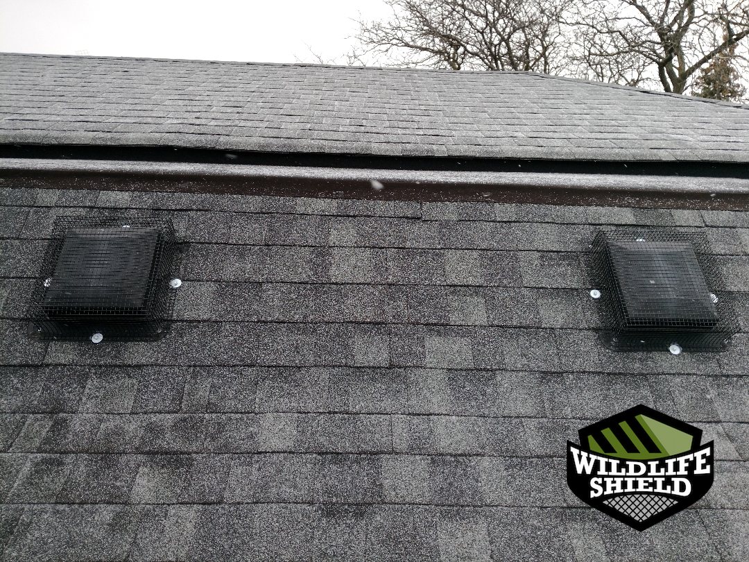 - Twelve roof vents were secured with galvanized steel vent cages to prevent wildlife access while maintaining proper ventilation.